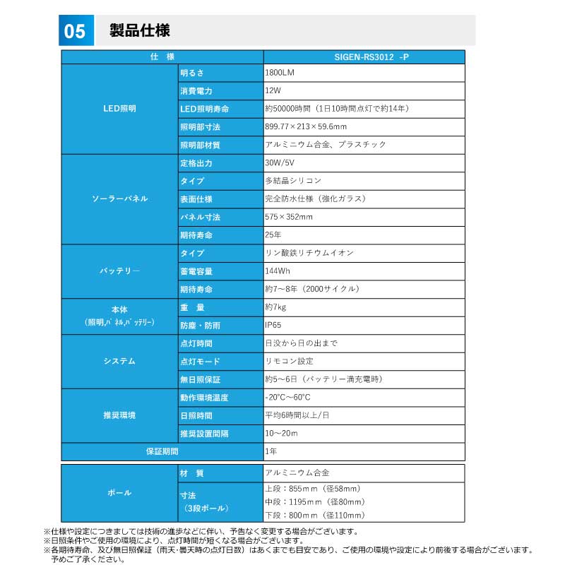 | 点灯時間 | 日照時間 平均5時間以上/日 |